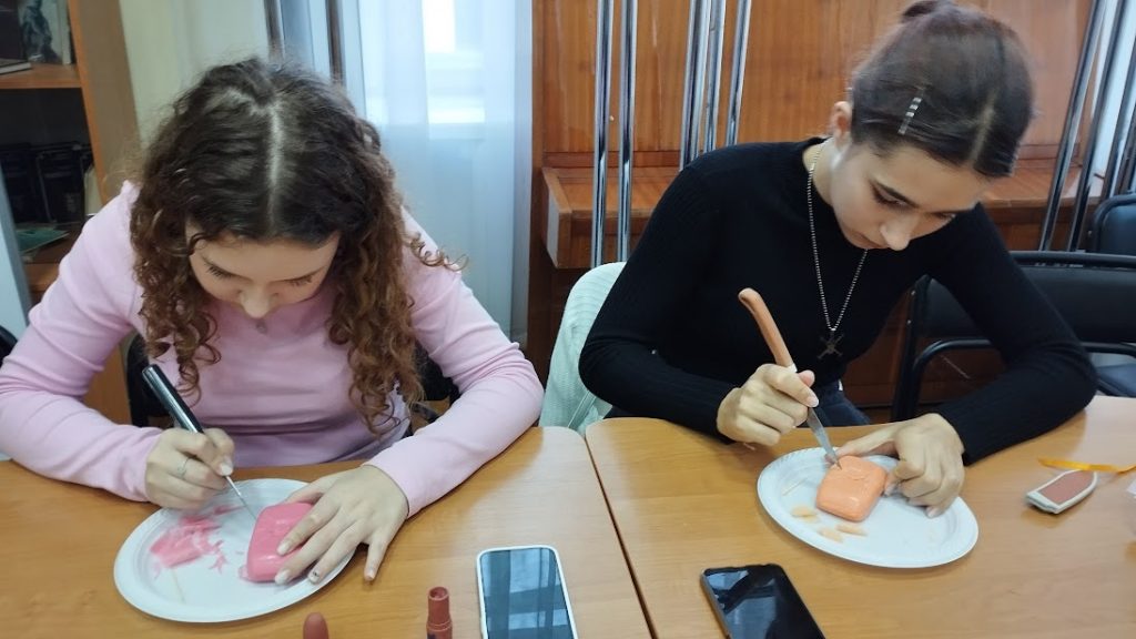 Заключною частиною засідання став майстер-клас від керівника гуртка-методиста Ірини Тимченко, яка навчила дітей працювати в техніці “карвінг” та оздоблювати мило