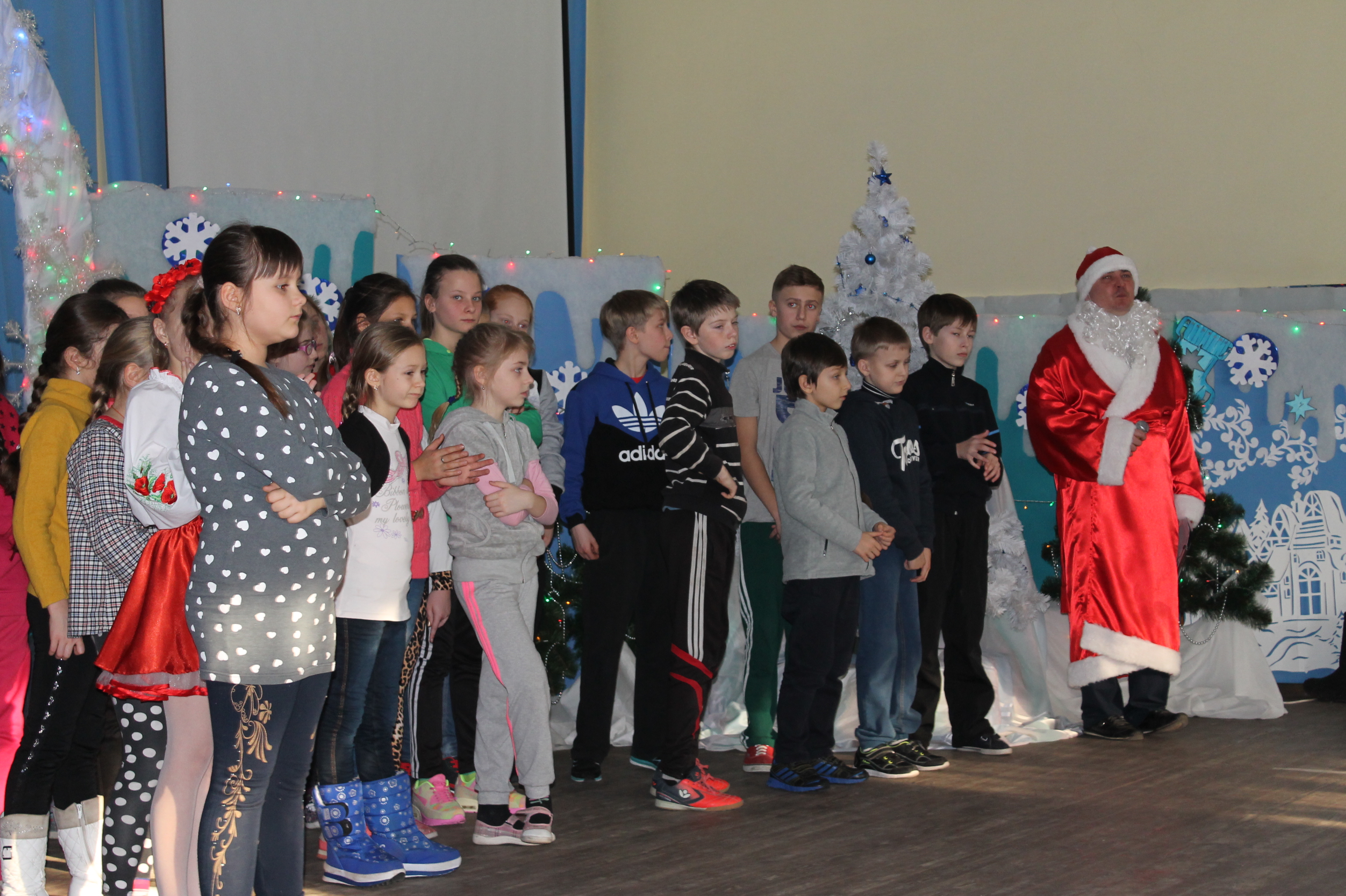 У змаганнях- естафетах від Діда Мороза взяло участь чотири команди вихованців по 10 учасників у кожній : «Super Star», «Веселі сніговики», «Блискавка» та «Ялинка», де перемогу здобула команда «Super Star». Чудові костюмовані номери надали танцювальний колектив «Канон» (керівник- Пуць О.Ю.), Карина Нісенгольцева ( керівник- Корячко Л.В.), Даша Воловик ( керівник- Вовк С.І.)