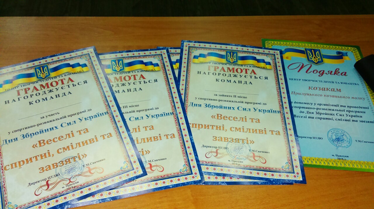 Команди нагороджено грамотами, а всі учасники заходу отримали солодощі від козаків ГО «ПКП». Від адміністрації закладу козакам вручили подяку за допомогу у проведенні спортивної програми.