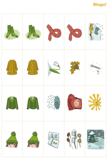 - Створіть заготовки ігрових полів для кожного вихованця групи. Ігрове поле являє собою своєрідну таблицю, в кожній комірці якої або написані певні слова за темою вивчення, або містяться зображення того, що вони позначають.